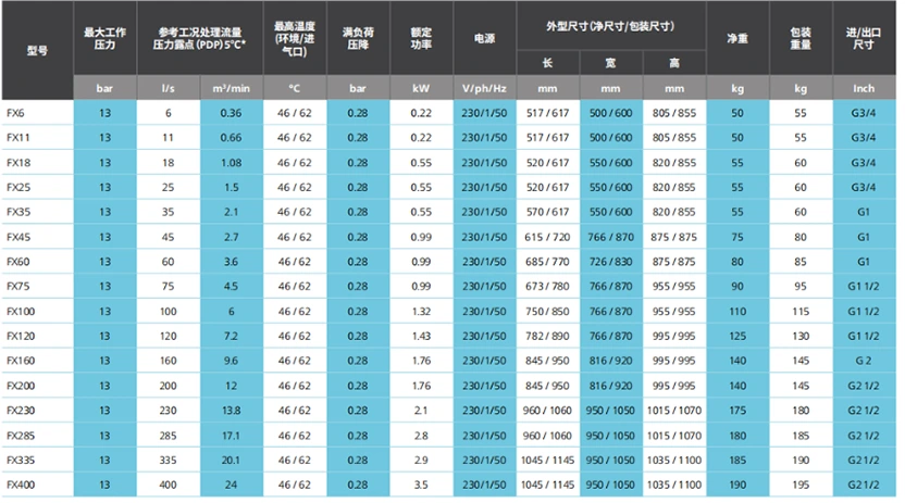 -70°C/-100°F kadar düşük çiğlenme noktalarına sahip çeşitli endüstriler ve uygulamalar için kapsamlı bir hava kurutucu yelpazesi mevcuttur.