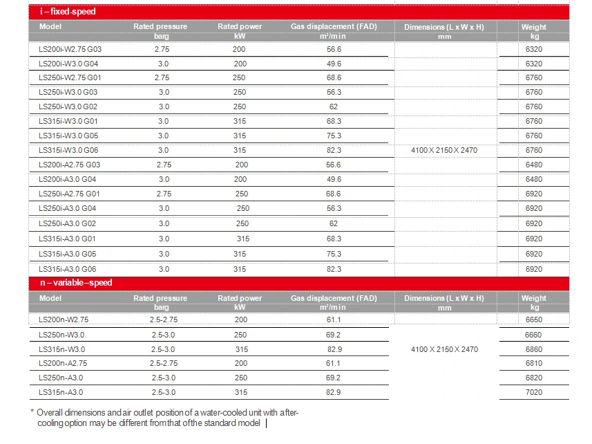 LS serisi düşük basınçlı yağsız vidalı hava kompresörü 200-315kW