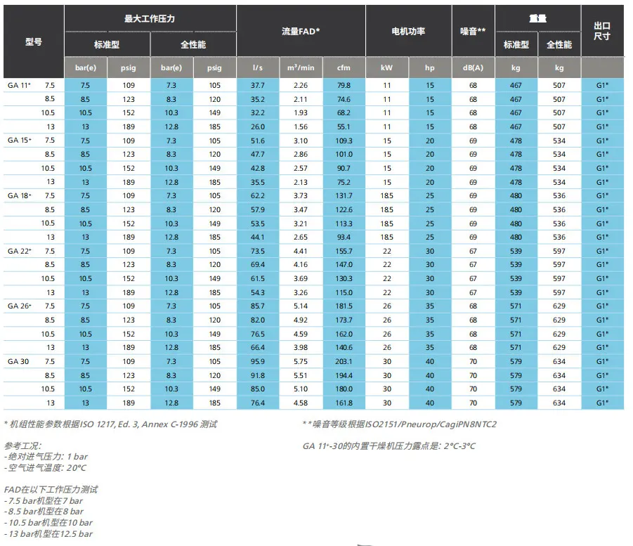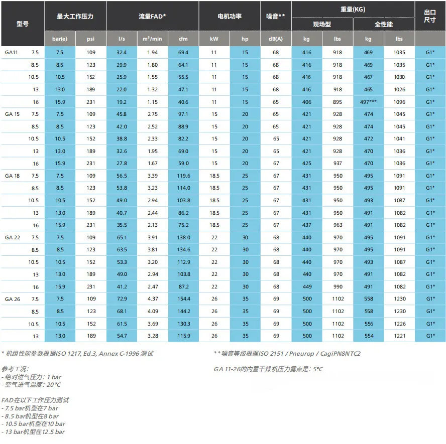 ·GA11-26, dayanıklı ve verimli yeni rotoru ve IE2/IE3 yüksek verimli motorunu benimser.
