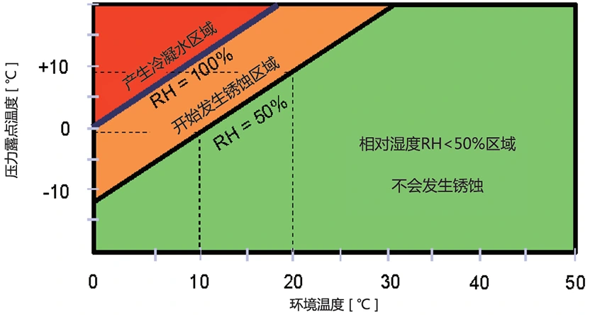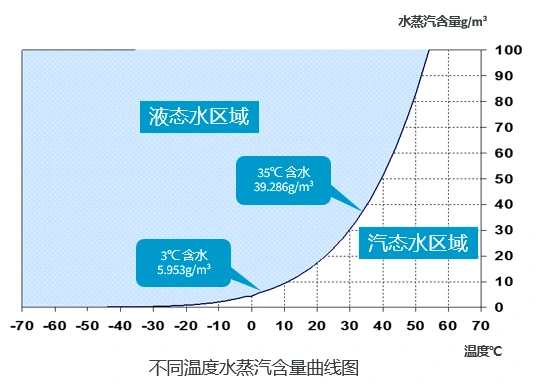 Şekil havanın farklı sıcaklıklarda farklı miktarlarda su buharı tuttuğunu göstermektedir. Hava soğur ve su buharı seviyesi de düşer. Eğride doymuş su buharı seviyelerini işaret eden noktalar bulunur. Bu noktaların her birinin sıcaklığı çiğlenme noktasıdır. Daha düşük bir çiğlenme noktası, basınçlı havada daha az su buharı anlamına gelir. Soğutmalı Hava Kurutucuları bu fiziksel kuralı kullanır. Basınçlı havanın ısıyı soğutucu akışkanla değiştirmesine izin veriyorlar. Bu işlem basınçlı havanın sıcaklığını düşürür. Soğuyan havanın su buharı sıvı suya dönüşür. Bu sıvı sistemden dışarı atılır. Örneğin basınçlı havanın 35°C'deki doymuş su buharı içeriği 39.286 g/m³'tür. Soğutucu akışkanla ısı alışverişi yapıldıktan ve 3°C'ye soğutulduktan sonra doymuş su buharı içeriği 5,953g/m³ olur. 33.333g /m³'lük fark, dondurarak kurutucuyla soğutma ve dehidrasyon sonrasında çıkarılan su miktarını gösterir. Yani basınçlı hava dondurarak kurutucudan geçtikten sonra nemin yaklaşık %85'i uzaklaştırılır ve basınçlı havanın kurutulmasının üretim prosesi gereksinimlerini karşılaması sağlanır.