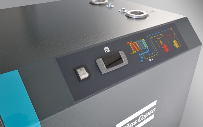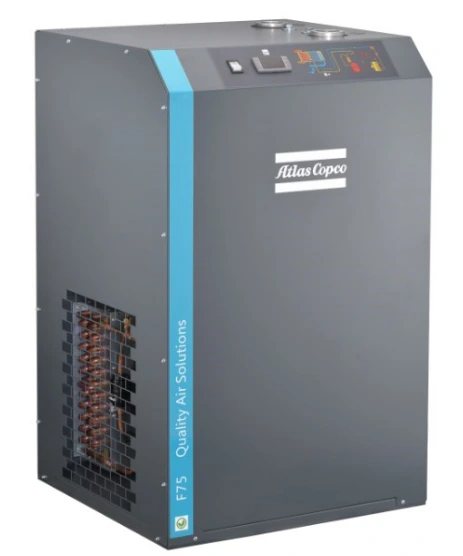 Atlas Copco F tipi soğutmalı hava kurutucusu, hava/hava, hava/soğutucu akışkan ve su ayırıcılarını birleştiren üçü bir arada ısı eşanjörü kullanır. Bu, soğutma sonrasında ayrılan sıvı suyu etkili bir şekilde uzaklaştırır ve basınçlı havayı önceden soğutarak ısı değişim verimliliğini artırır.